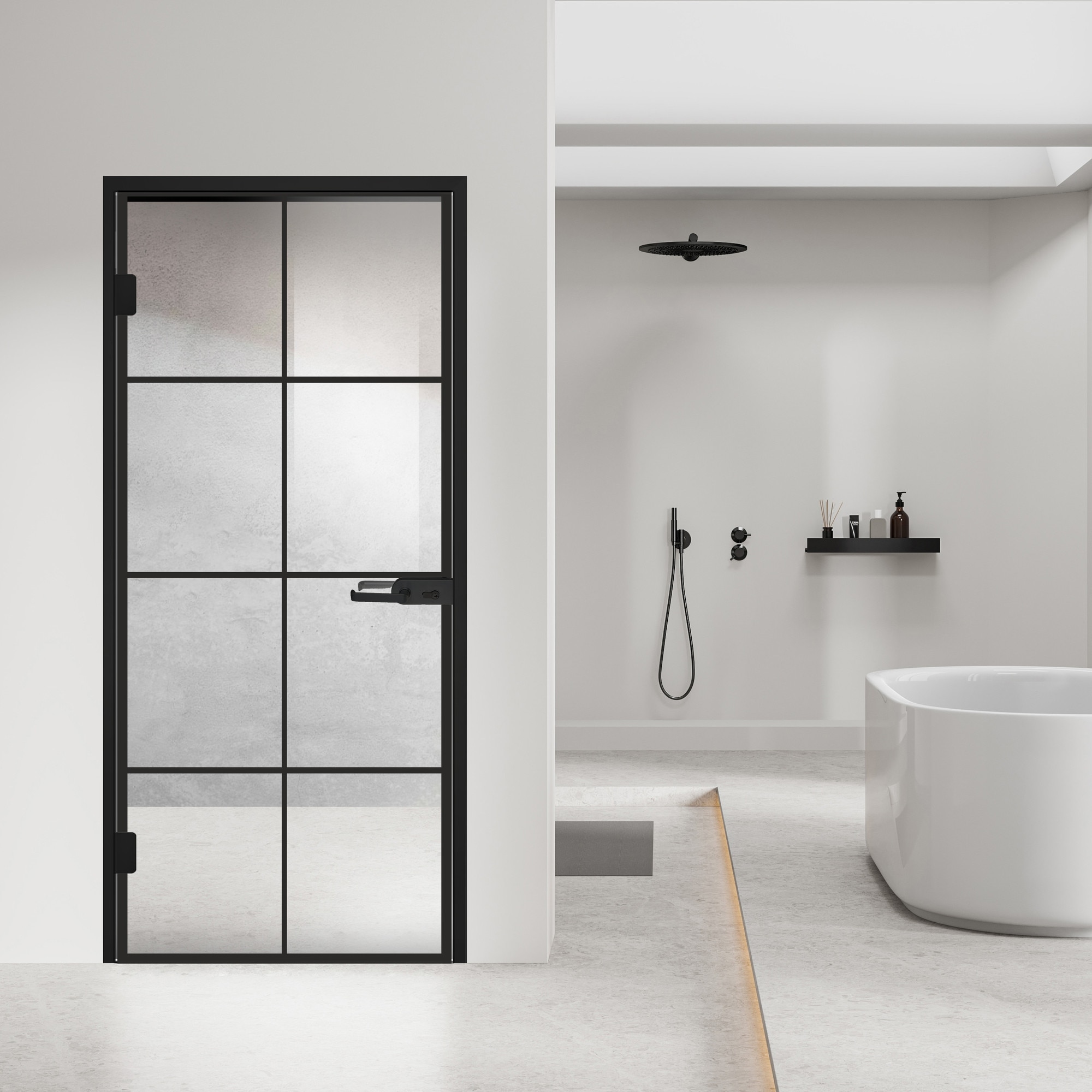 Usa batanta Studio Black, model Rezidence negru pentru gol 80x198 cm cu toc L pentru interior, sticla 8 mm clara, securizata