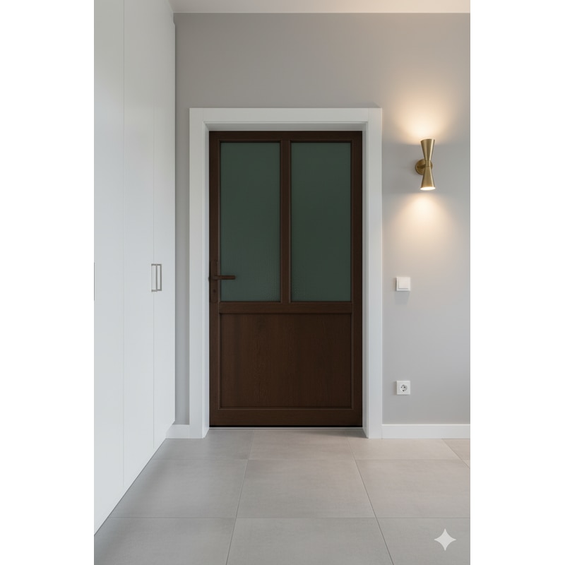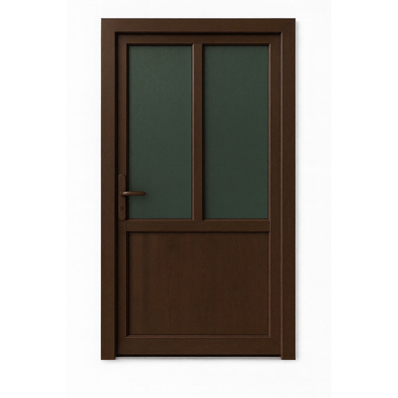 Usa de intrare (interior/exterior), Termopan/PVC, 6 camere, T model, culoare Nuc, dimensiune 80x190
