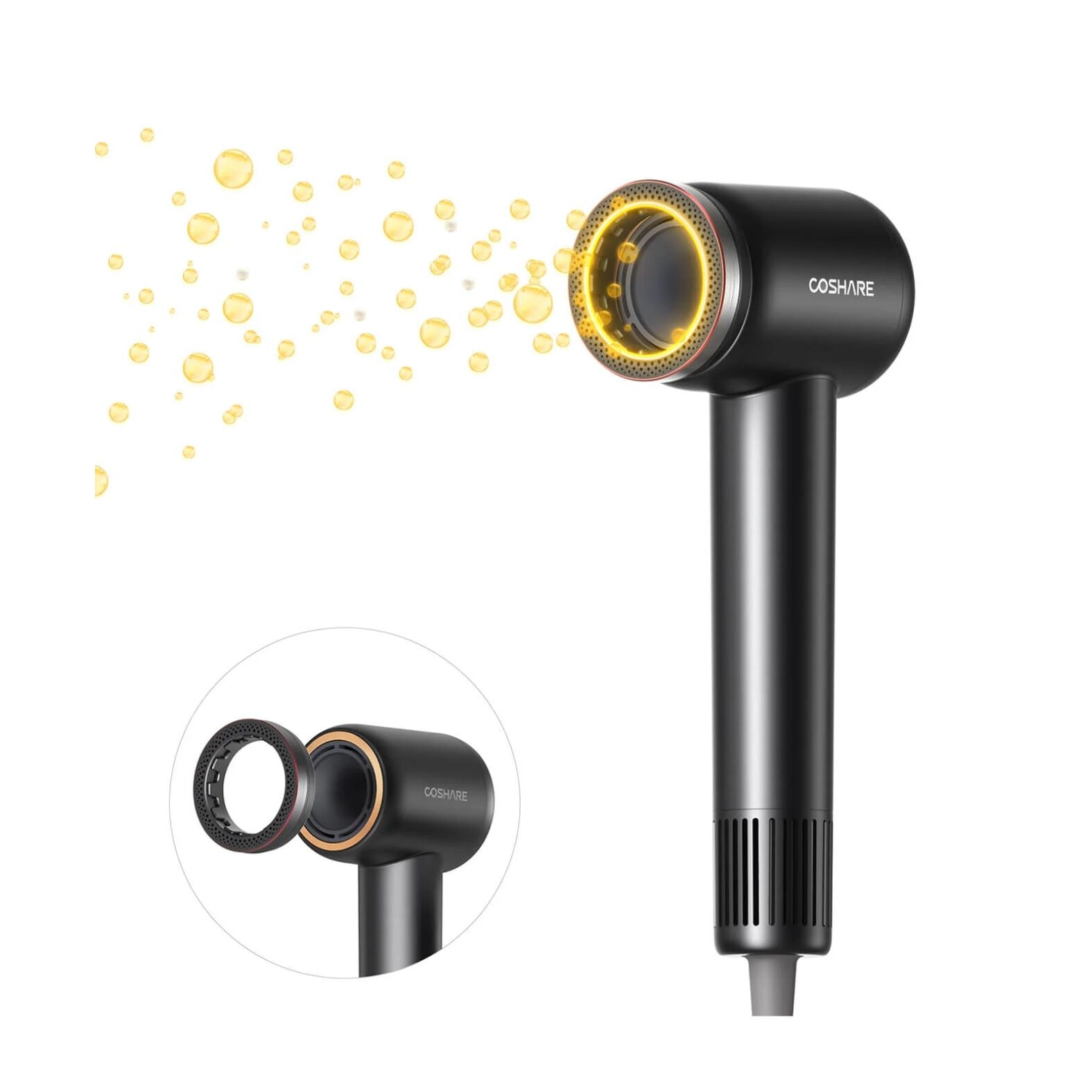 Uscator de par COSHARE HD10, ShineRing, ioni negativi, 110.000 RPM, puternic, control termic, zgomot redus, negru