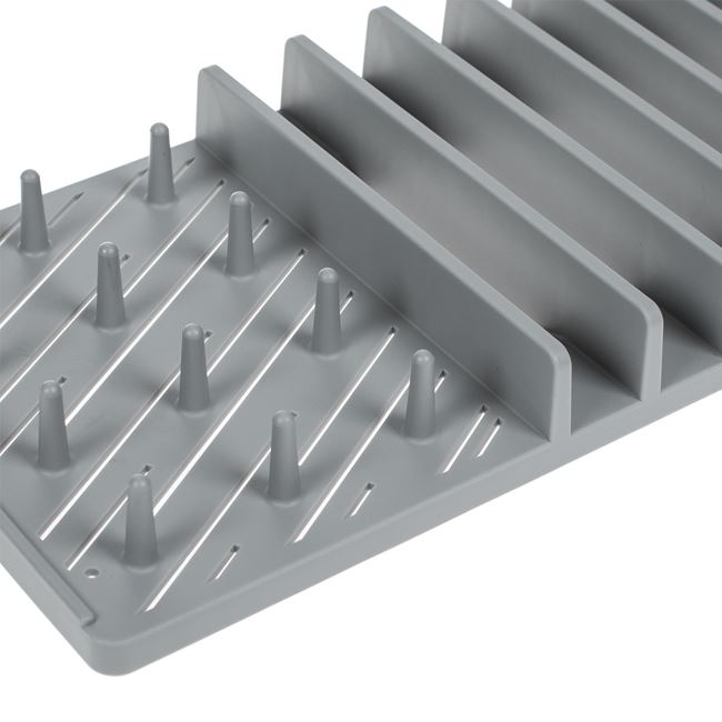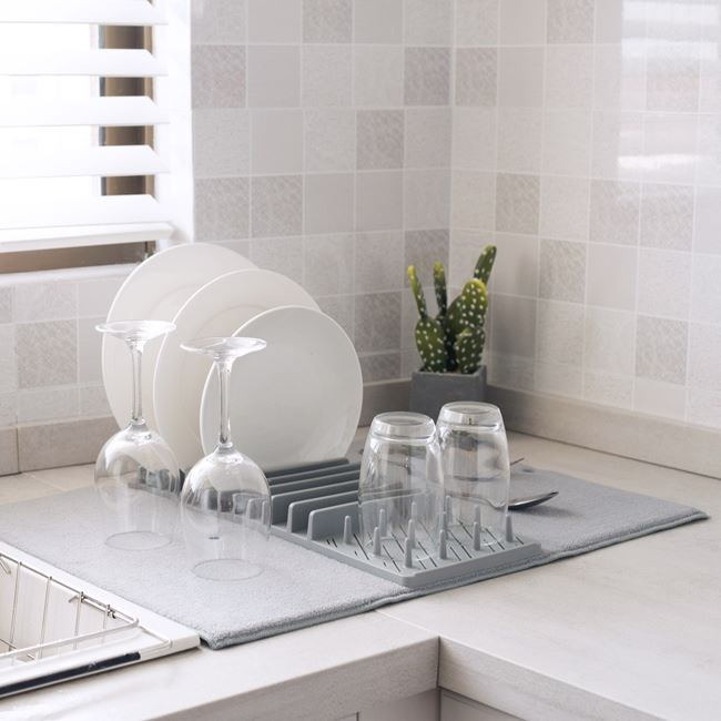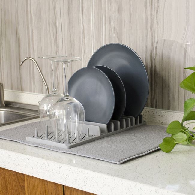 Uscator pentru vase, cu spatiu pentru farfurii si pahare si laveta absorbanta, gri, 45x3.6x16.5cm