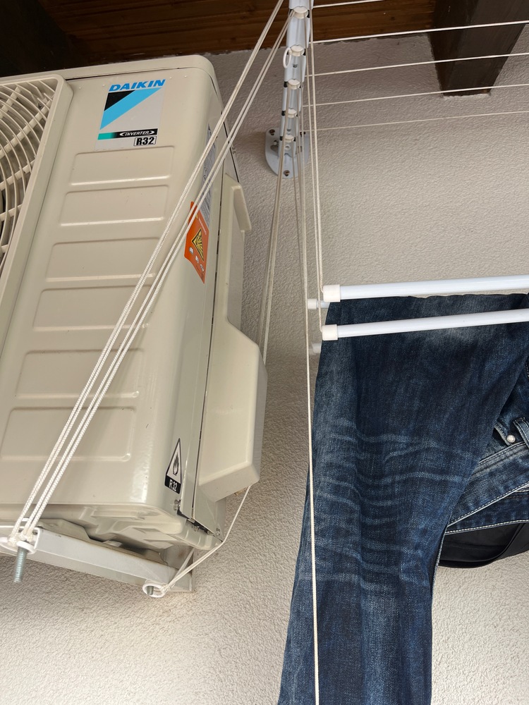 - atunci când vom așeza rufele pe bara de uscare, sfoara va fi susținută de suportul de prindere central.