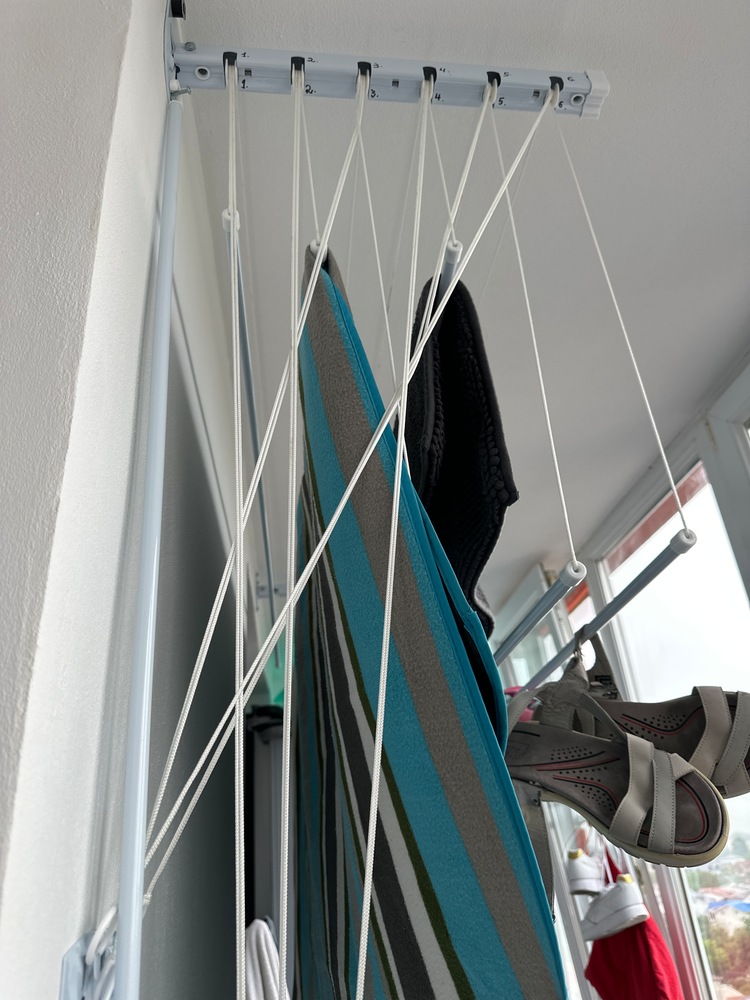 - atunci când ne dorim să lăsăm bara de uscare în jos, doar eliberăm din suport sfoara iar bara de uscare se va lăsa în jos;