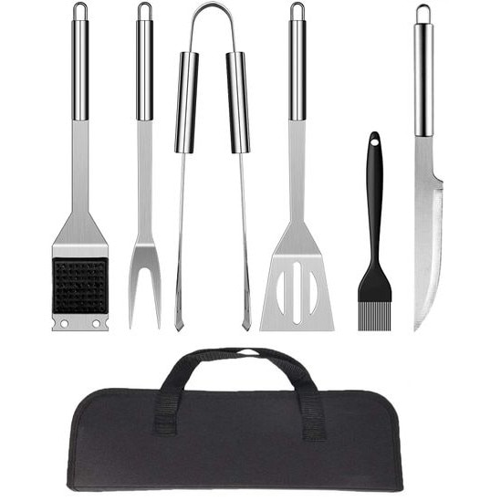 Ustensile pentru gratar, 6 piese, otel inoxidabil, NMUG6PSVIC, Argintiu