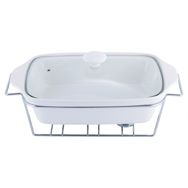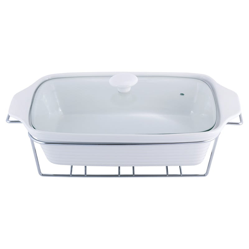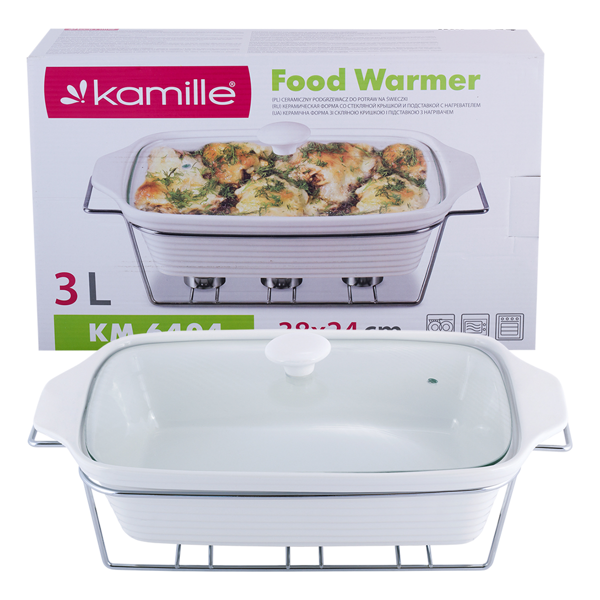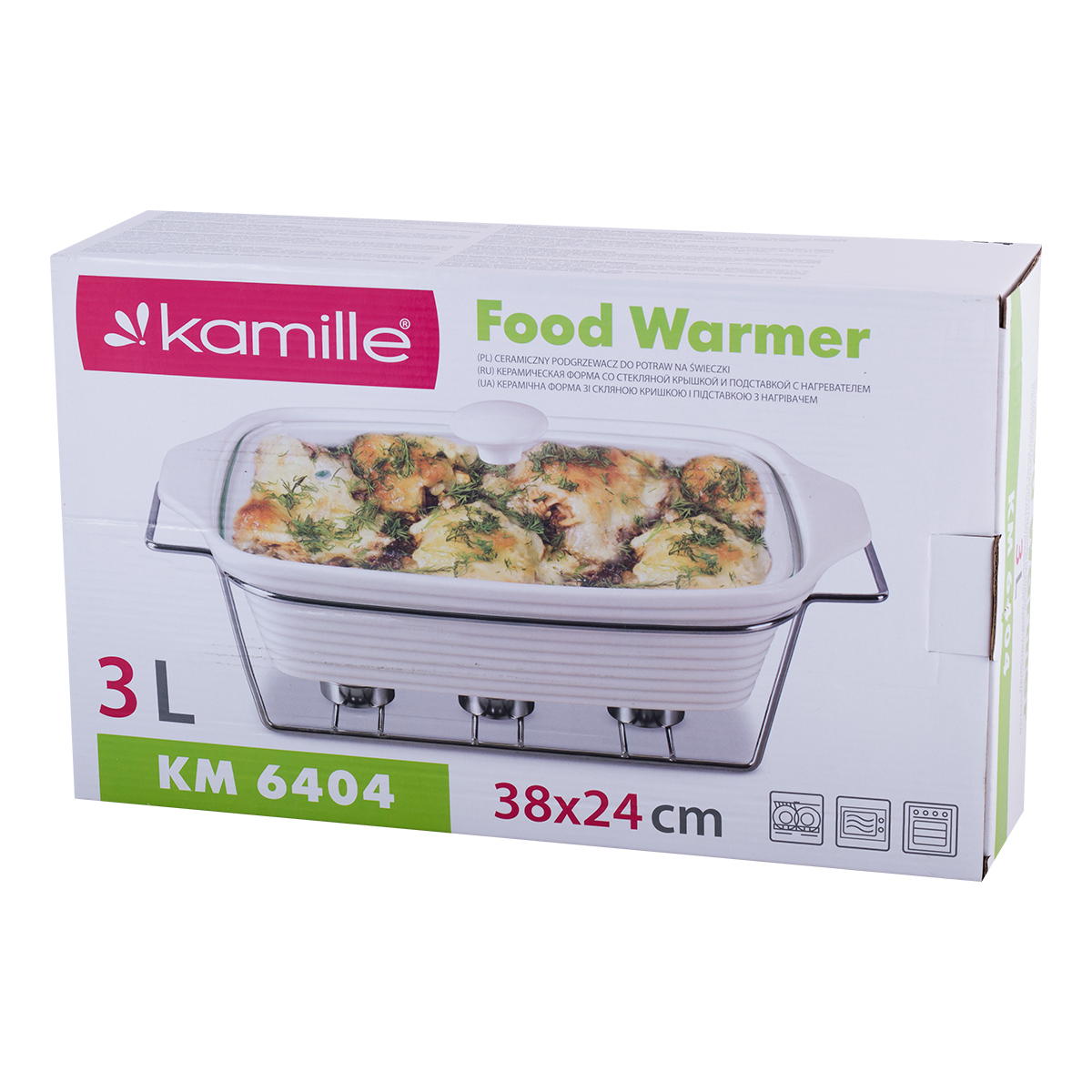 Vas termorezistent, Kamille KM-6404, ceramica cu suport pentru incalzire, capac sticla, 3L, 24x34x11 cm