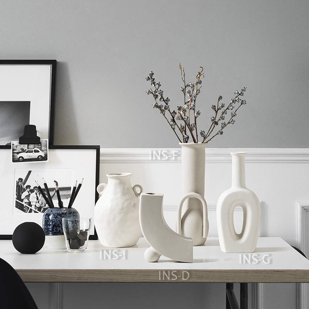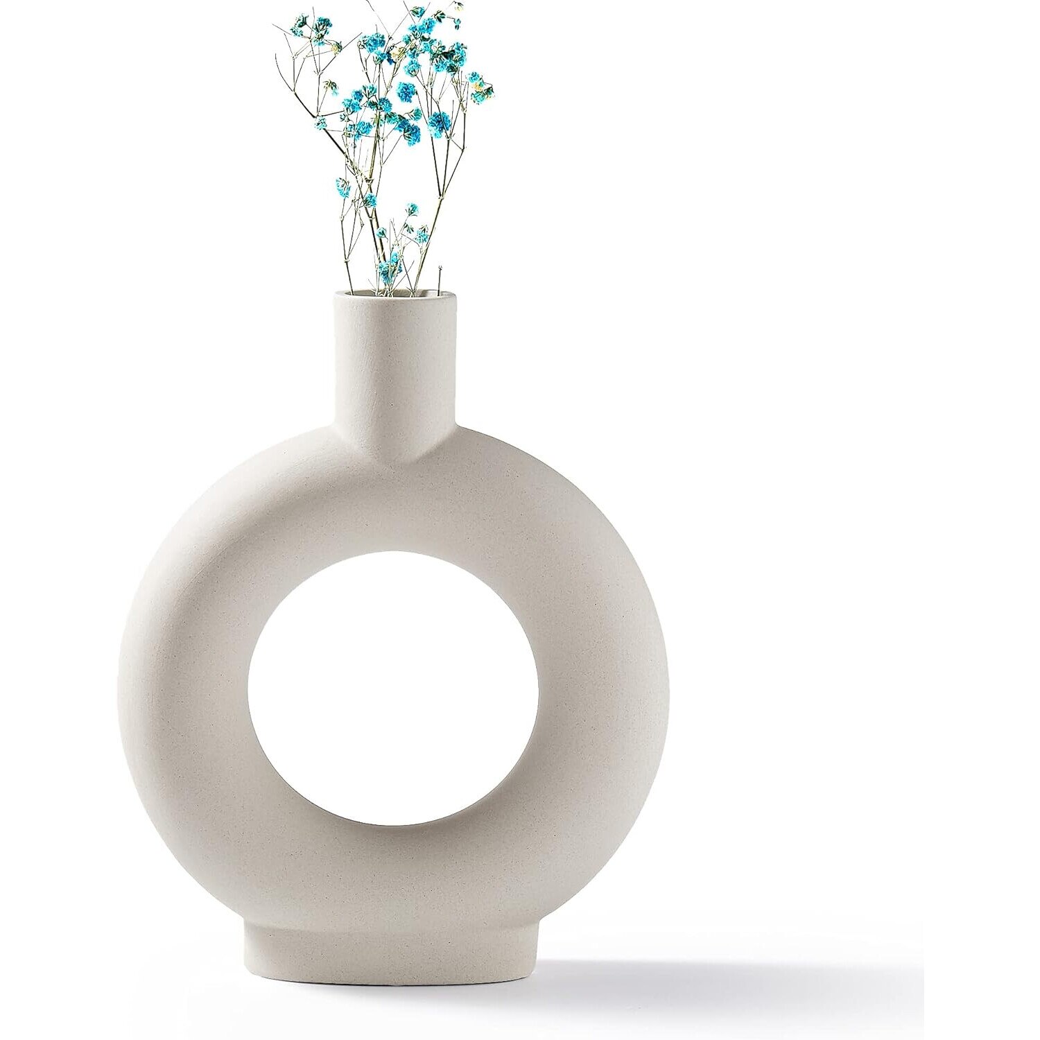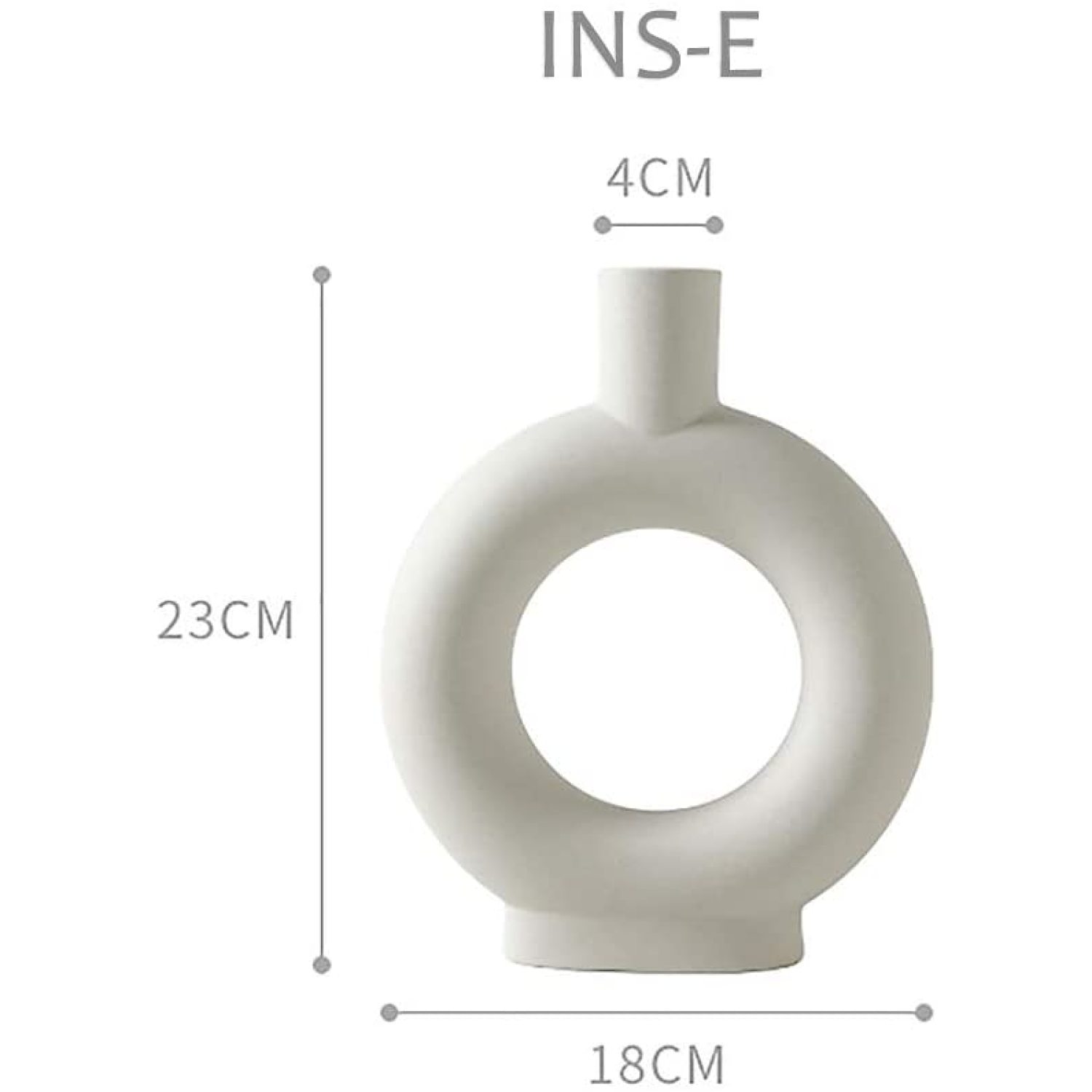 Vaza decorativa din ceramica, AMRINUGL, design gol, forma de donut, finisaj mat, alb laptos