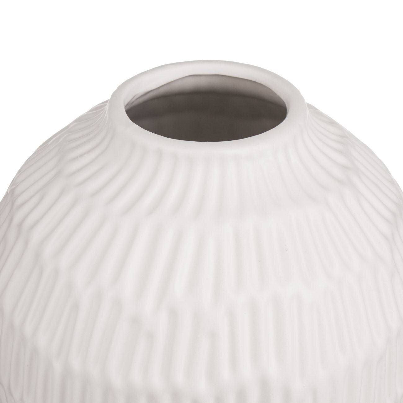 Vaza Decorativa Sferica din Ceramica Alba cu Model Reliefat pentru Flori Uscate sau Artificiale Ø21x23cm