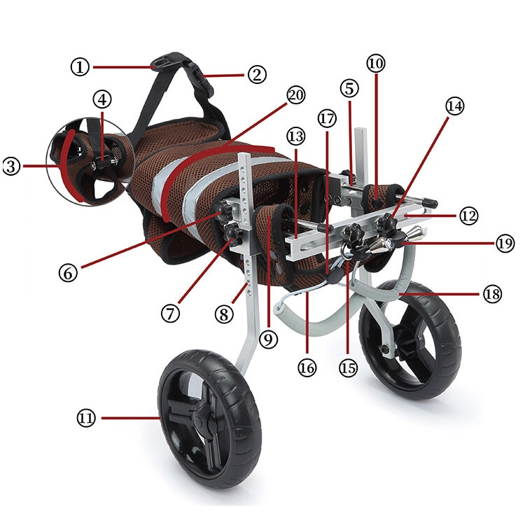 Vehicul de recuperare pentru caini, asistat, reglabil, ferm, reflectorizant, portocaliu