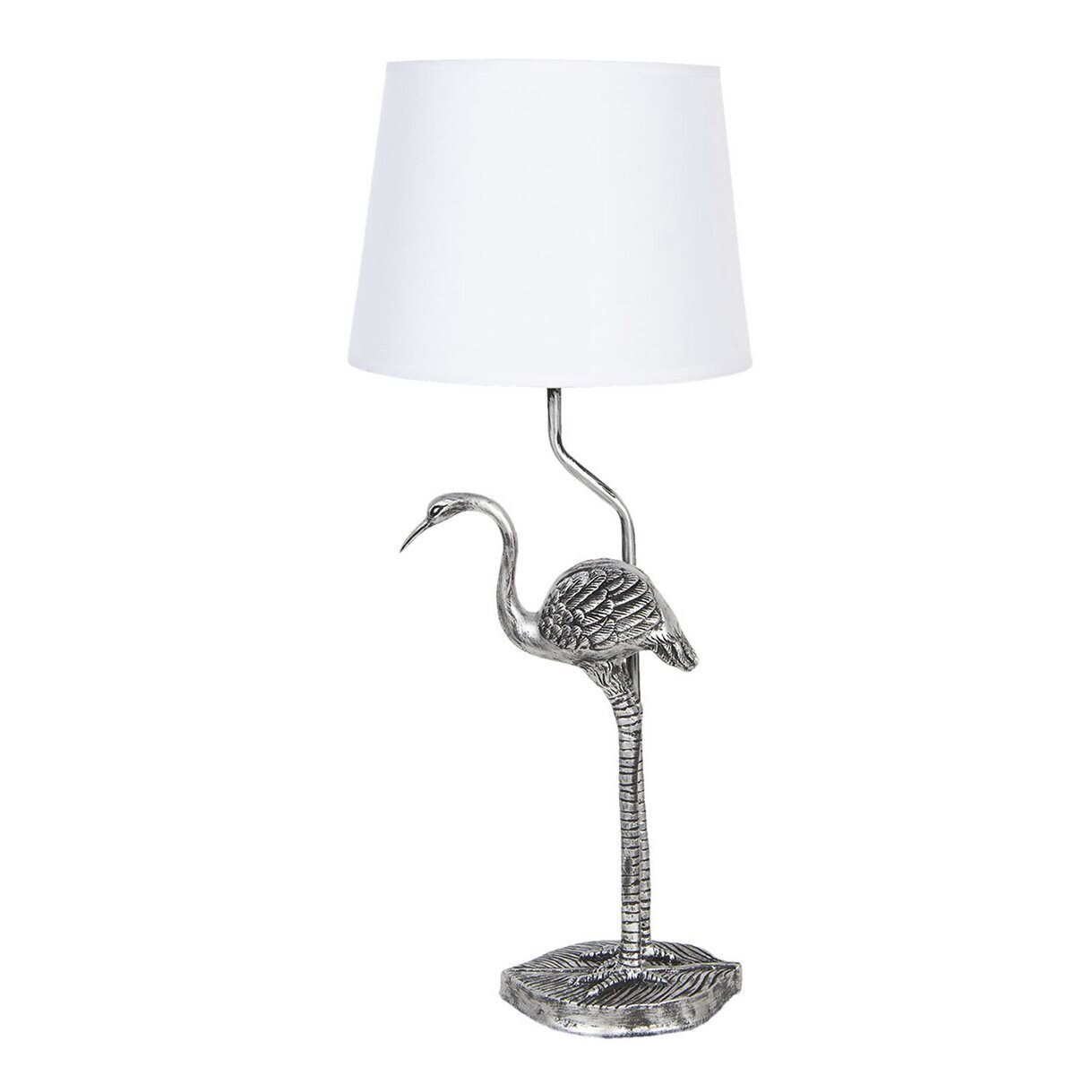 Veioza decorativa din polirasina argintie cu abajur textil alb Flamingo Ø 25 cm x 28 h