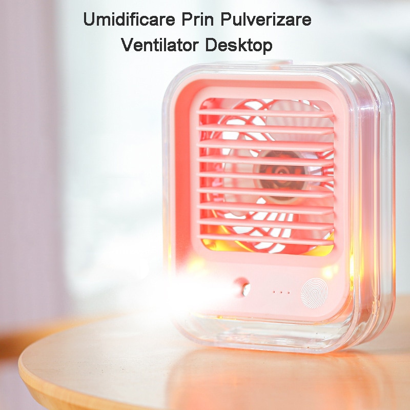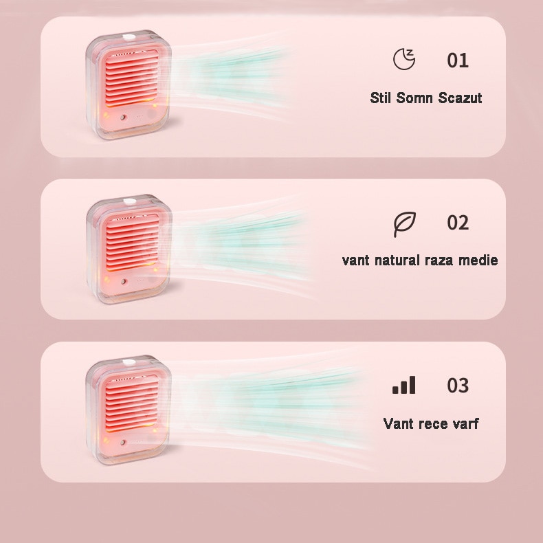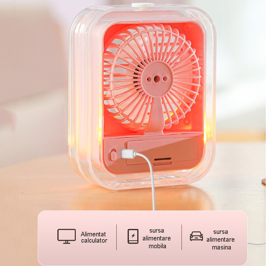 Ventilator cu umidificare portabil, oein®, reincarcabil USB, 3 viteze, 2 moduri pulverizare, rezervor apa 330 ml, 4.5 W, 1200mAh, roz