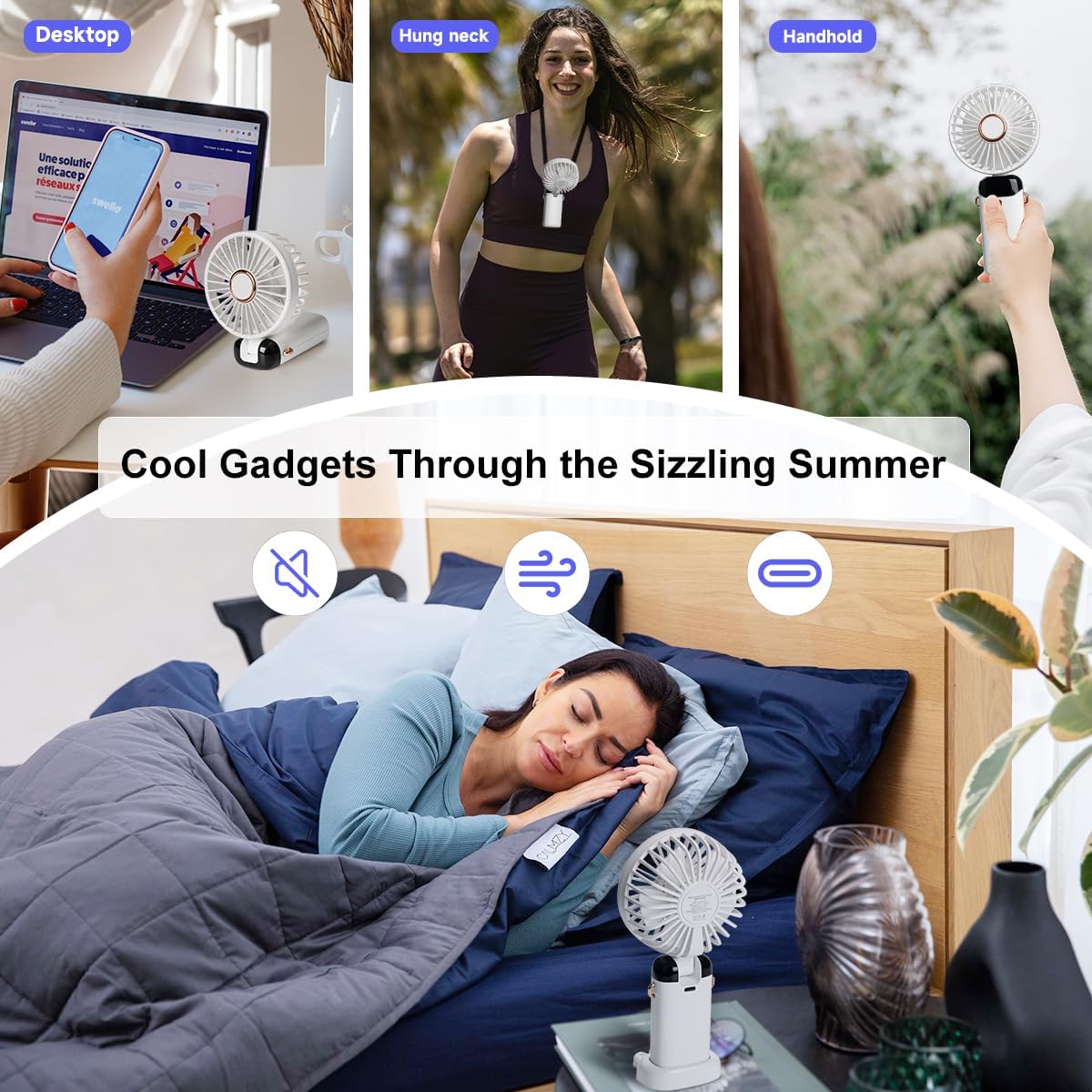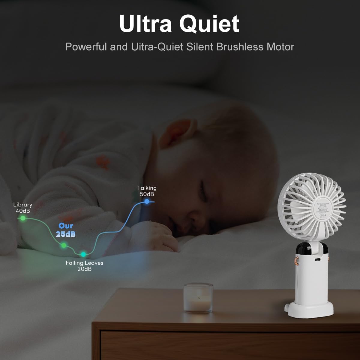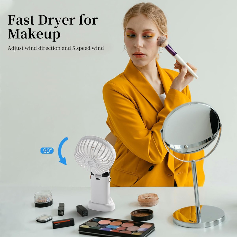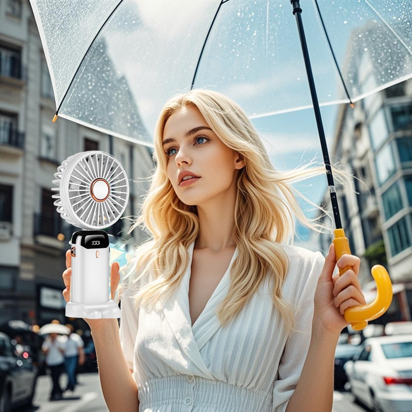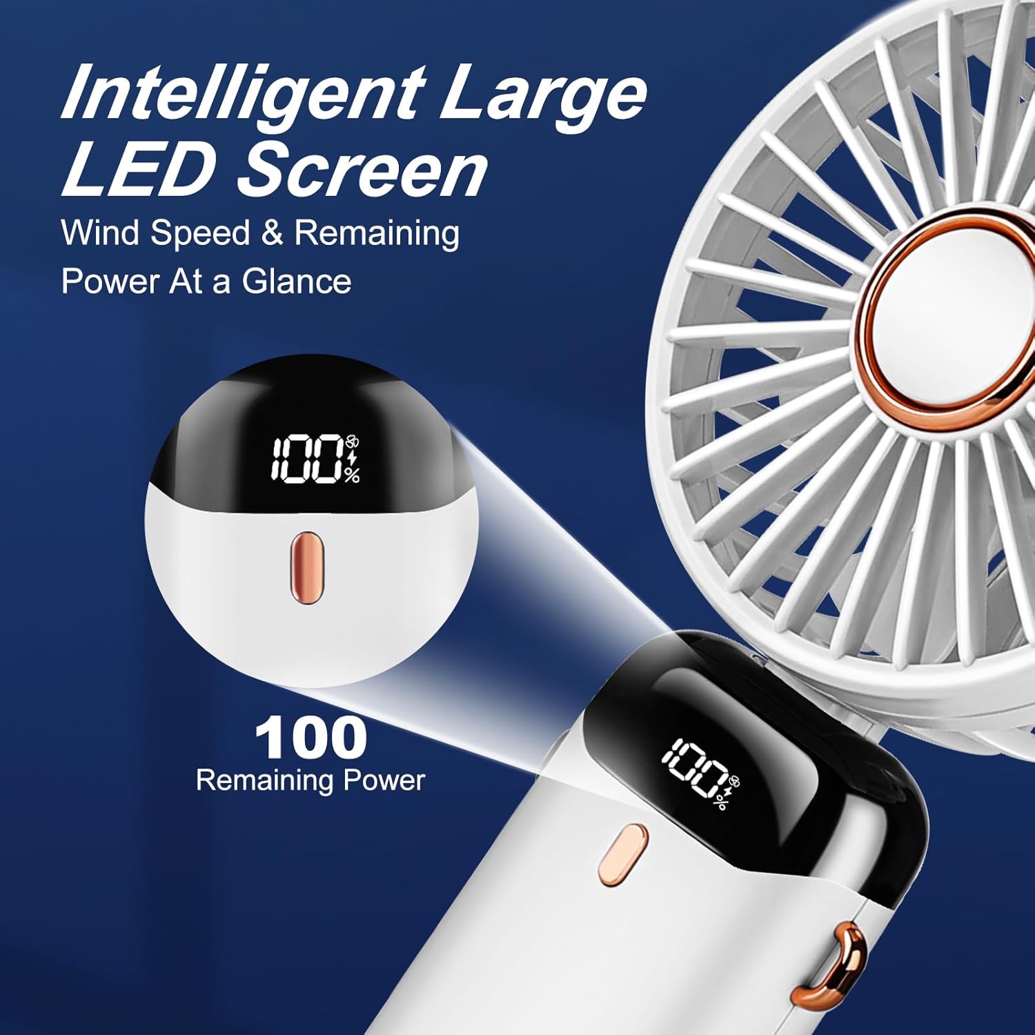 Ventilator ultra portabil, 3 in 1, de mana, de birou, de gat, cu 5 viteze, pliabil, cu afisaj LCD, 4000mAh, alb