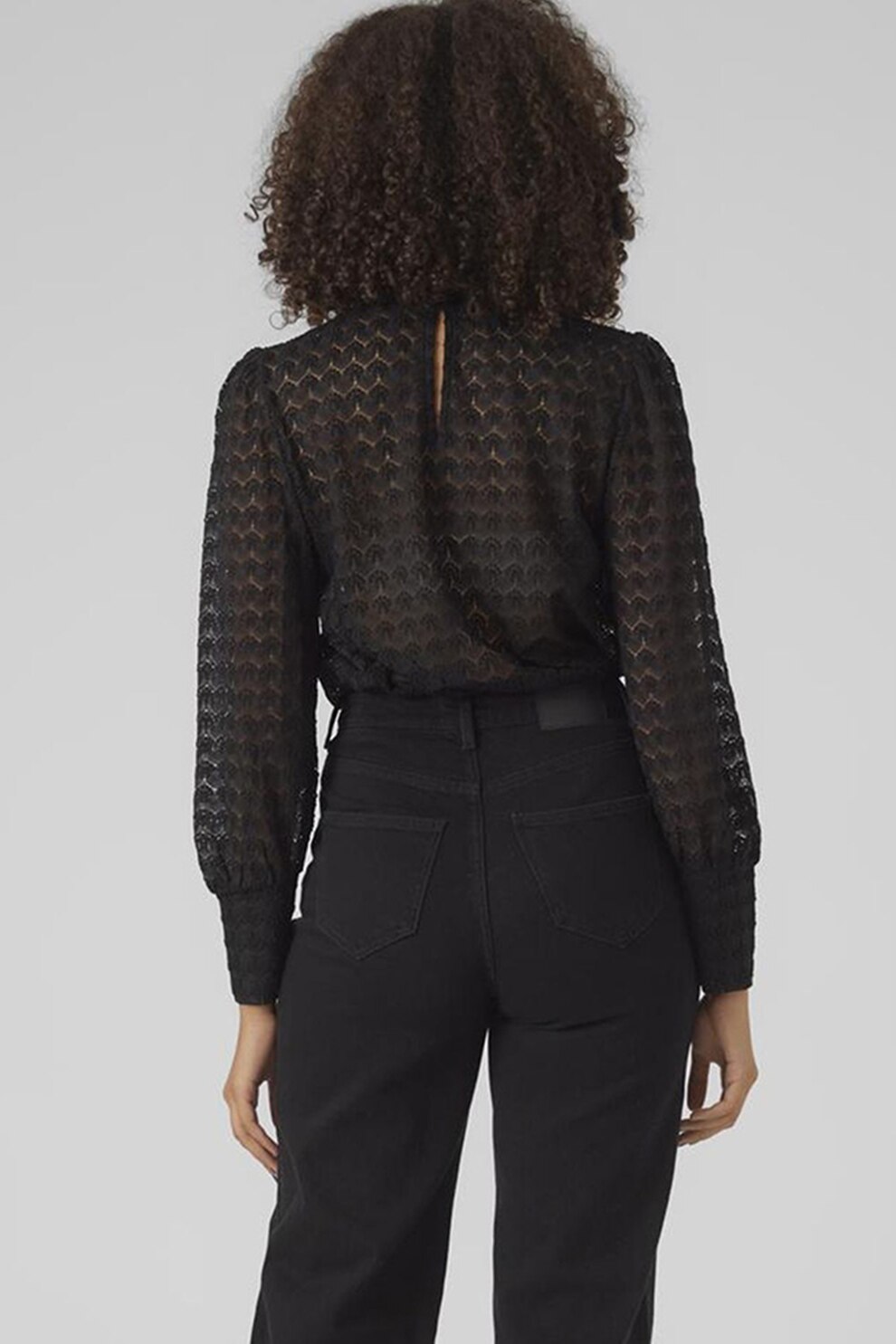 Vero Moda - Bluza semitransparenta cu guler scurt, Negru