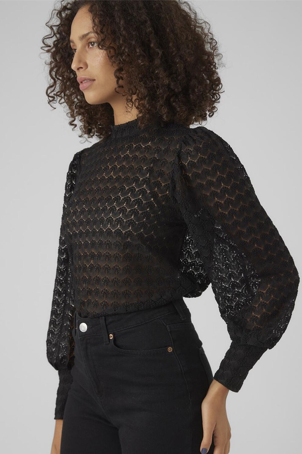 Vero Moda, Bluza semitransparenta cu guler scurt, Negru