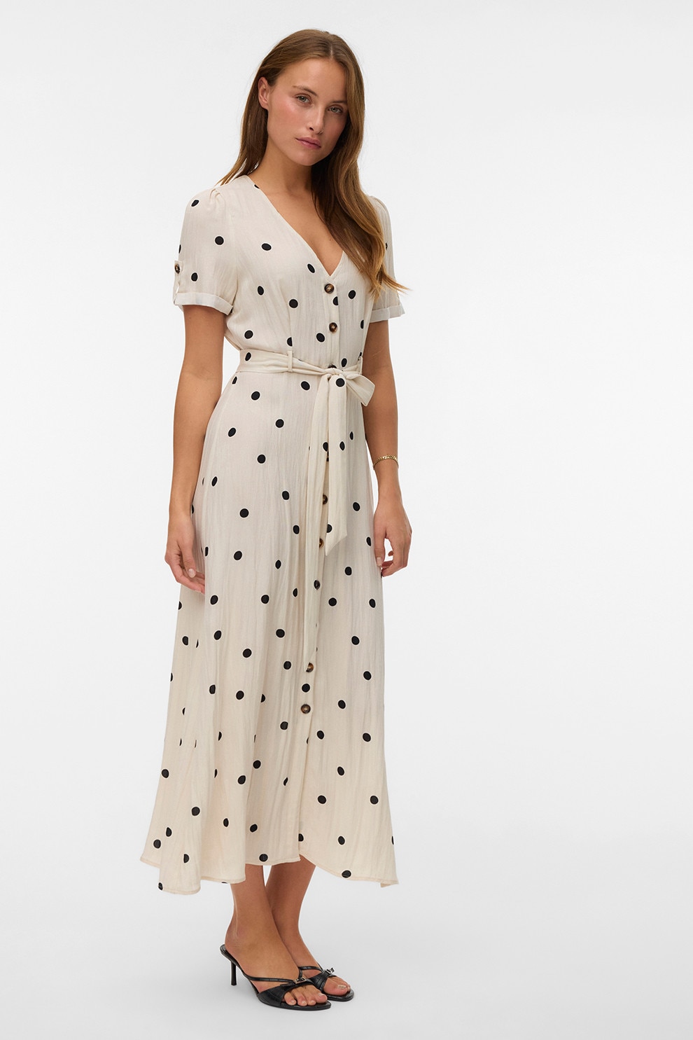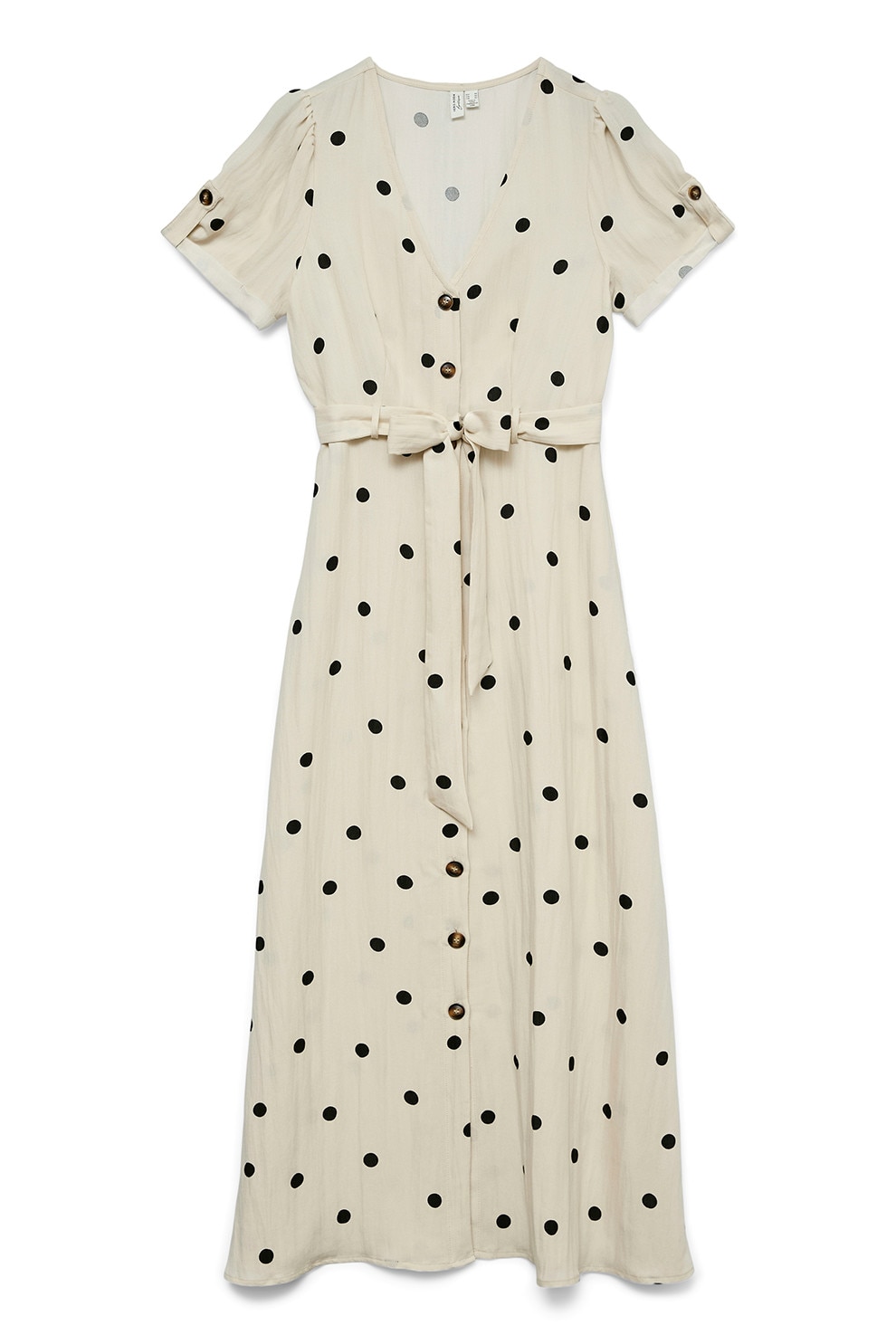 Vero Moda - Rochie-camasa cu cordon in talie cu buline, Alb fildes/Negru