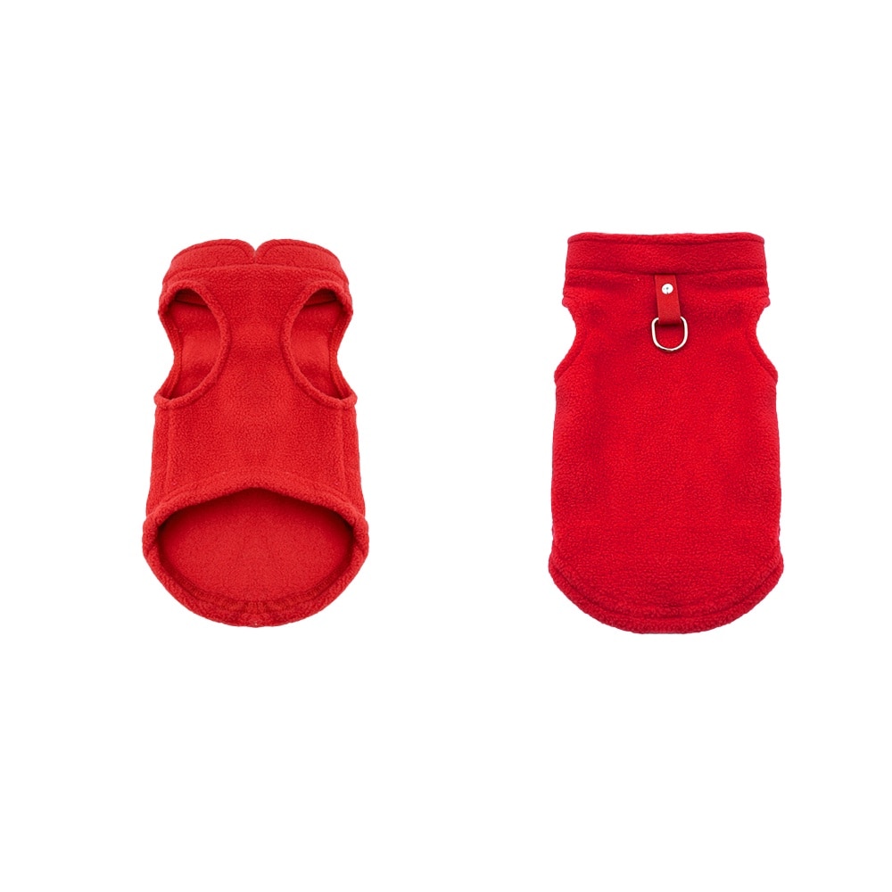 Vesta din fleece pentru caini si pisici, design cu D-ring, rosu stralucitor, marimea XL