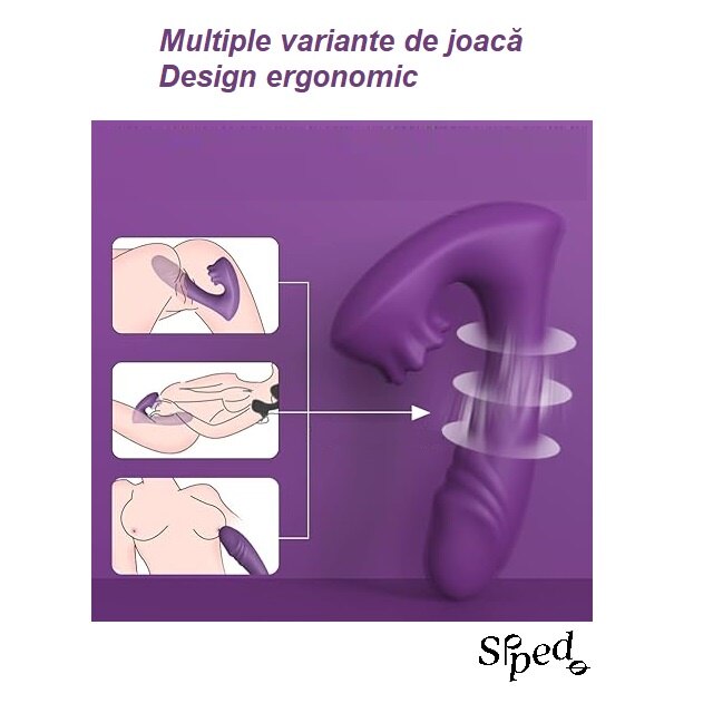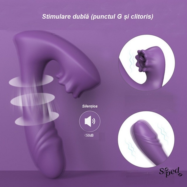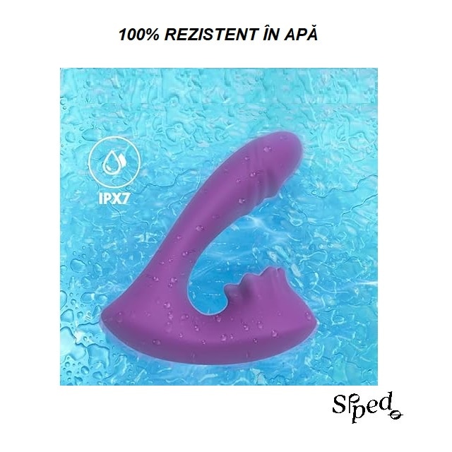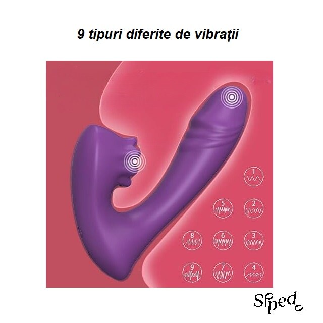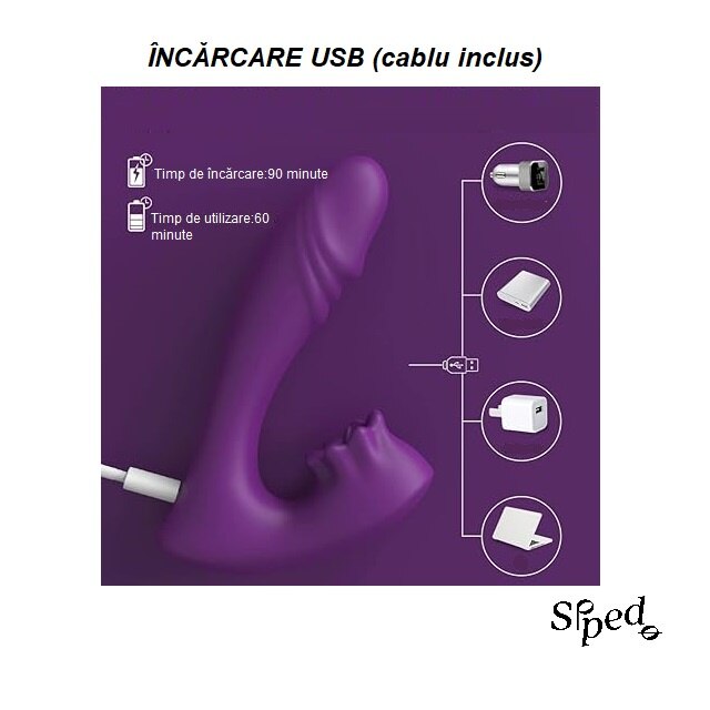 Vibrator 2 in 1, 9 moduri de vibratie, stimularea clitorisului si punctului G, jucarie sexuala pentru femei, cupluri, rezistenta la apa, silentios, incarcare USB, timp functionare 60 minute, silicon, prietenos cu pielea, mov, SIPEDO
