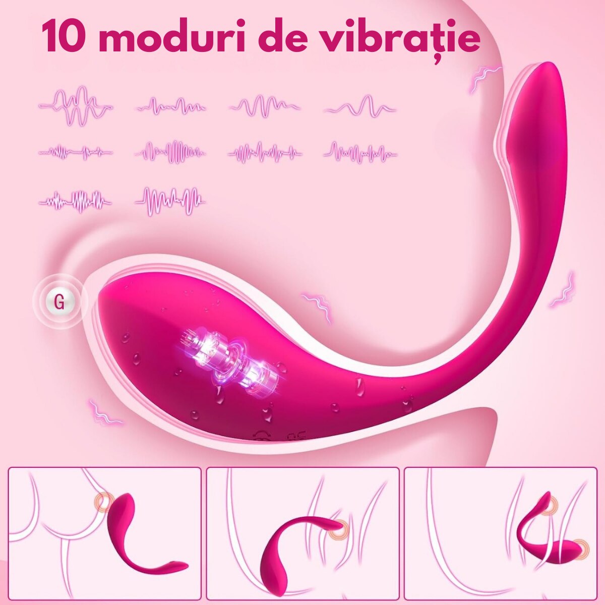 - 10 moduri de vibratie – de la stimulare delicata la vibratii puternice.