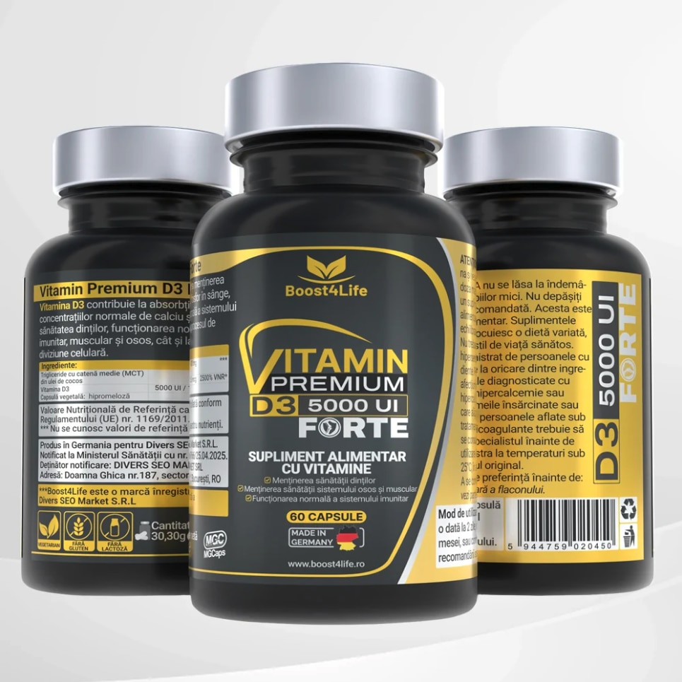 Vitamin PREMIUM D3, Boost4Life, 5000 UI D3, 125 mcg, MGCaps® softgels, 60 capsule