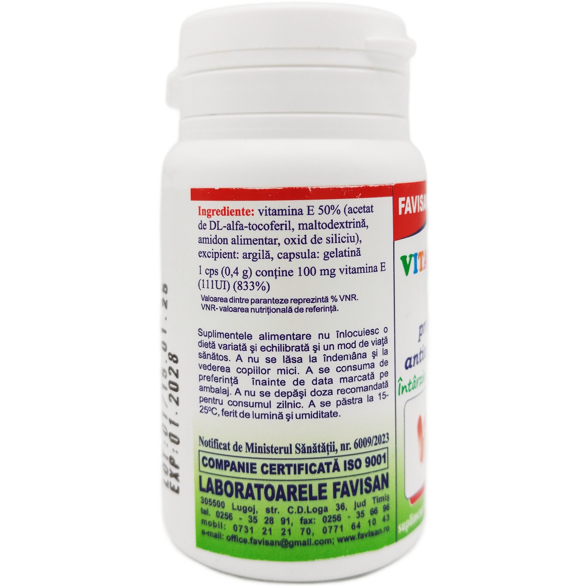 Vitamina E 100mg, antioxidant puternic anti-aging, protectie celulara si imunitate, Dr. Virginia Faur, 30cps, Laboratoarele Favisan