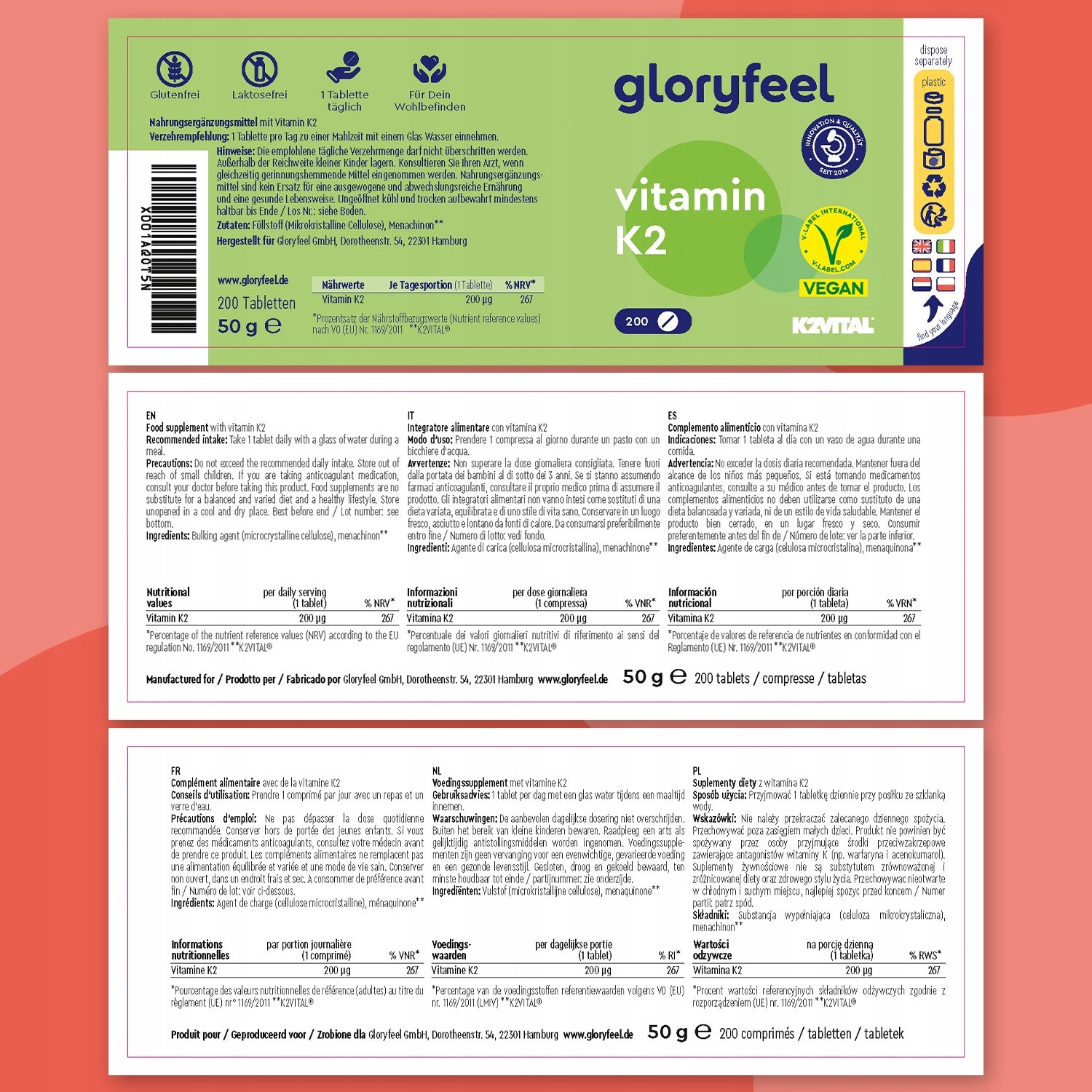 Vitamina K2 MK7 200mcg, 200 tablete, 100% pur, vegan, fara lactoza, fara gluten