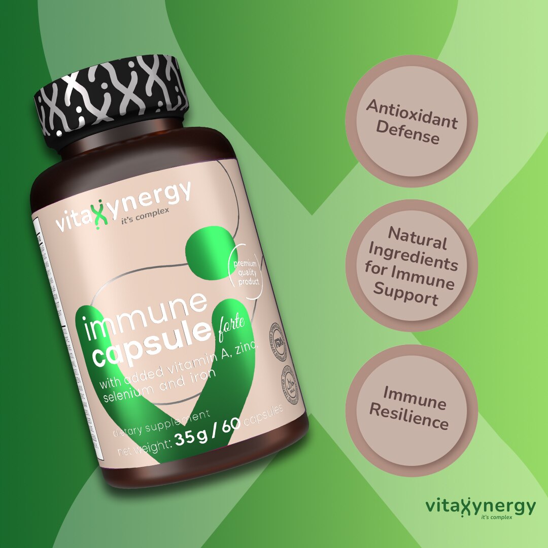 VITAXYNERGY Immune Capsule Forte - 30 Capsule Vegetale pentru Sustinerea Sistemului Imunitar si Circulator, Aprobat de Ministerul Sanatatii, Certificat FDA, GMP, Halal
