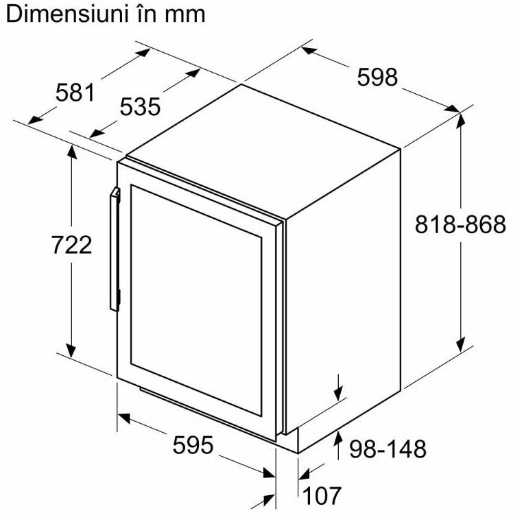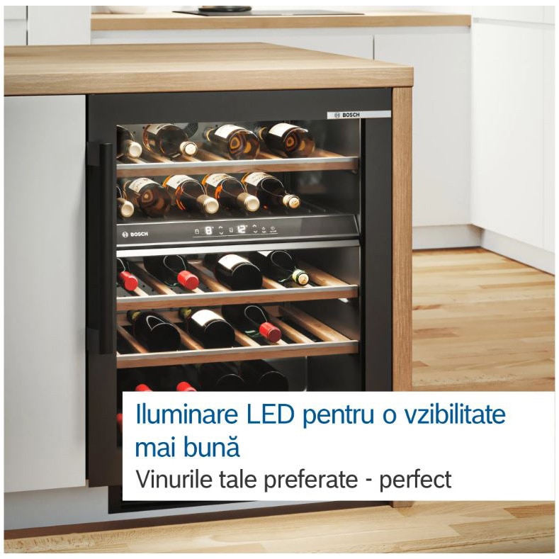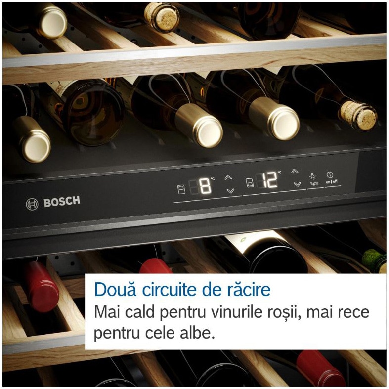 Vitrina vinuri incorporabila Bosch KUW21AHG0, 120 l, 44 sticle, Iluminare LED, Doua circuite de racire, Clasa G, 82 cm, Sticla