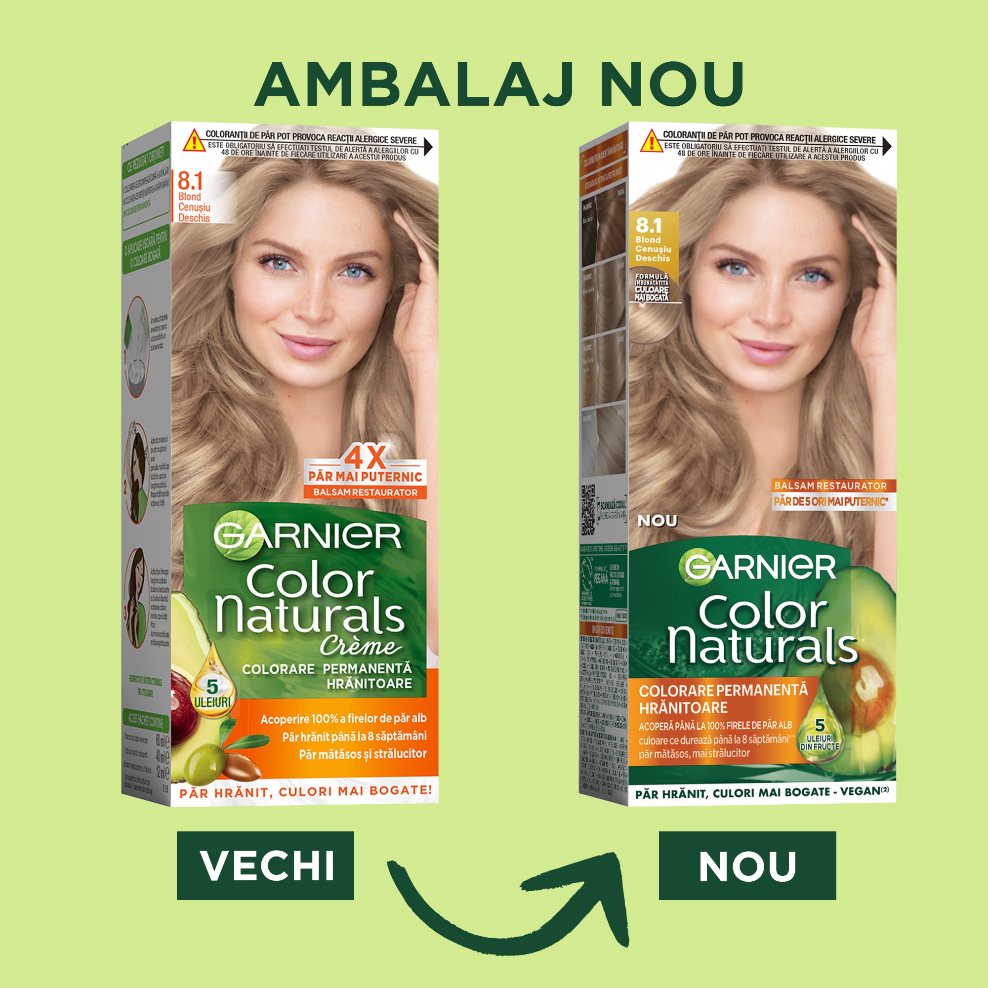 Vopsea de par permanenta cu amoniac Garnier Color Naturals, 8.1 Blond Cenusiu Deschis, 112 ml