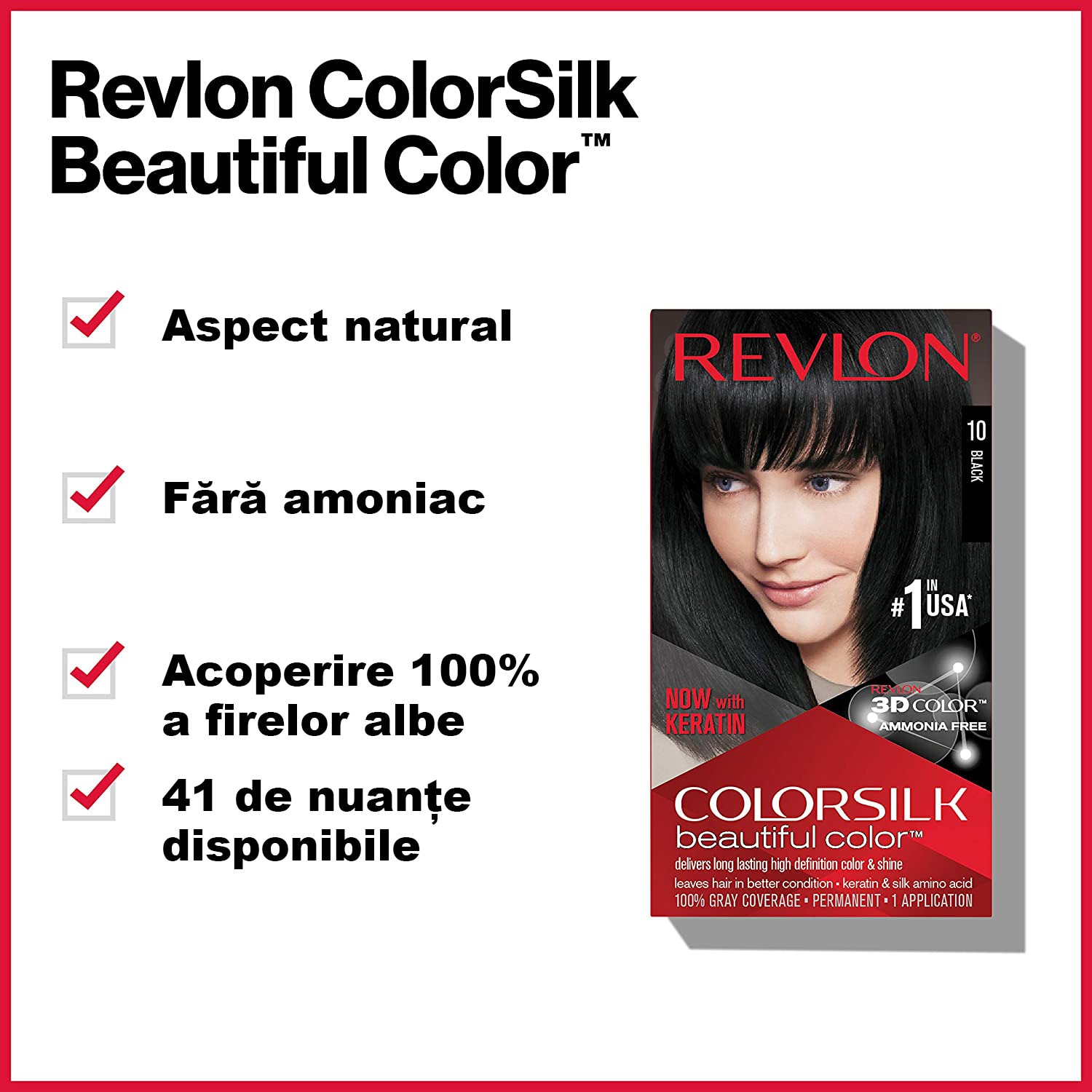 Formula Revlon Colorsilk este foarte hranitoare, nu contine amoniac si prezinta keratina si aminoacizi pentru a lasa parul intr-o stare mai buna decat inainte de colorare.