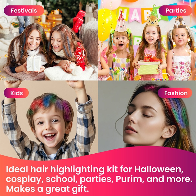 Vopsea de par temporara, set 10 creioane, WEPZSXO, multicolor, non-toxic, usor de spalat