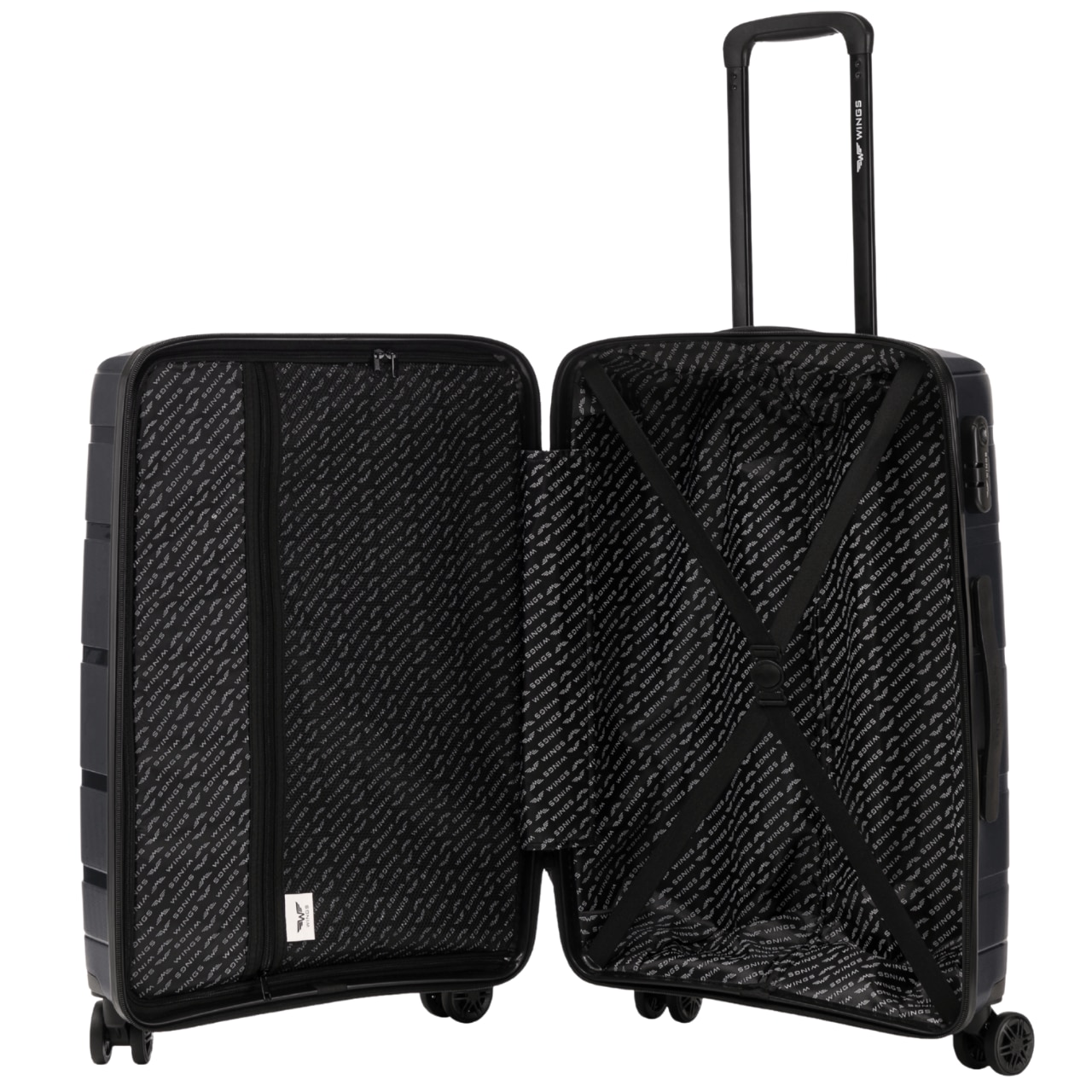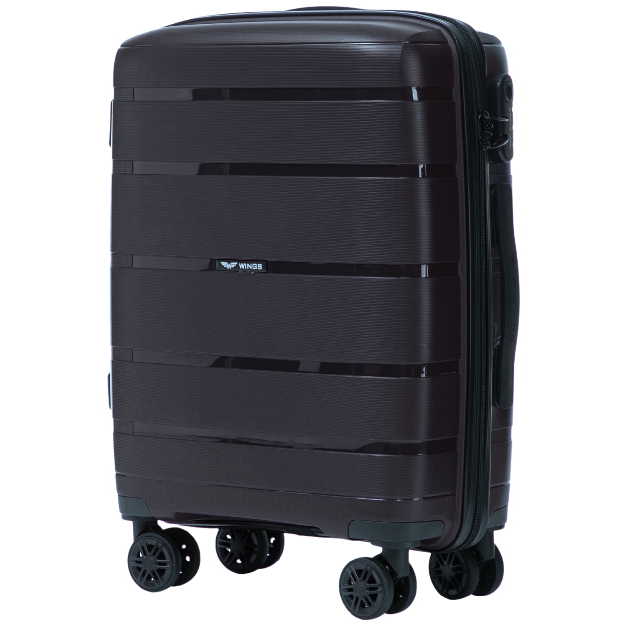 WINGS Valiza de cabina S Polipropilena Negru rezistent roti pivotante 360° si incuietoare cu cifru