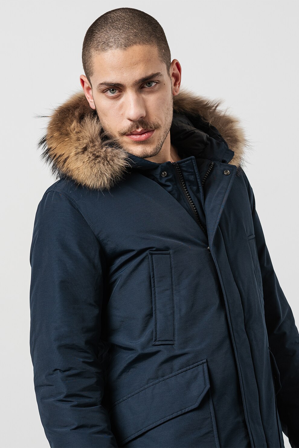 Woolrich - Geaca parka cu blana sintetica Daytona, Albastru marin, XL