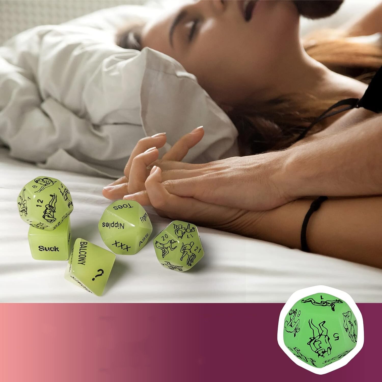 In intuneric stralucesc 5 dintre cuburi stralucesc in intuneric pentru un preludiu fara lumina, doua cuburi pentru incalzire si unul pentru pozitii. Foarte recomandat daca tu si partenerul tau sunteti intr-o faza de explorare a relatiei voastre. | ZAR CU 10 FETE Degete de la picioare, sfarcuri, XXX, degete, gat, interiorul coapselor, sub buric, buze, urechi. | CADOU PERFECT Aceste zaruri sexuale de lux pentru adulti sunt cadoul perfect pentru cupluri sau proaspeti casatoriti - ambalate frumos ca un cadou aventuros de ziua de nastere sau de Craciun pentru cei indragostiti, jucarii incitante pentru petreceri de burlaci sau burlacite sau seturi de dragoste. |