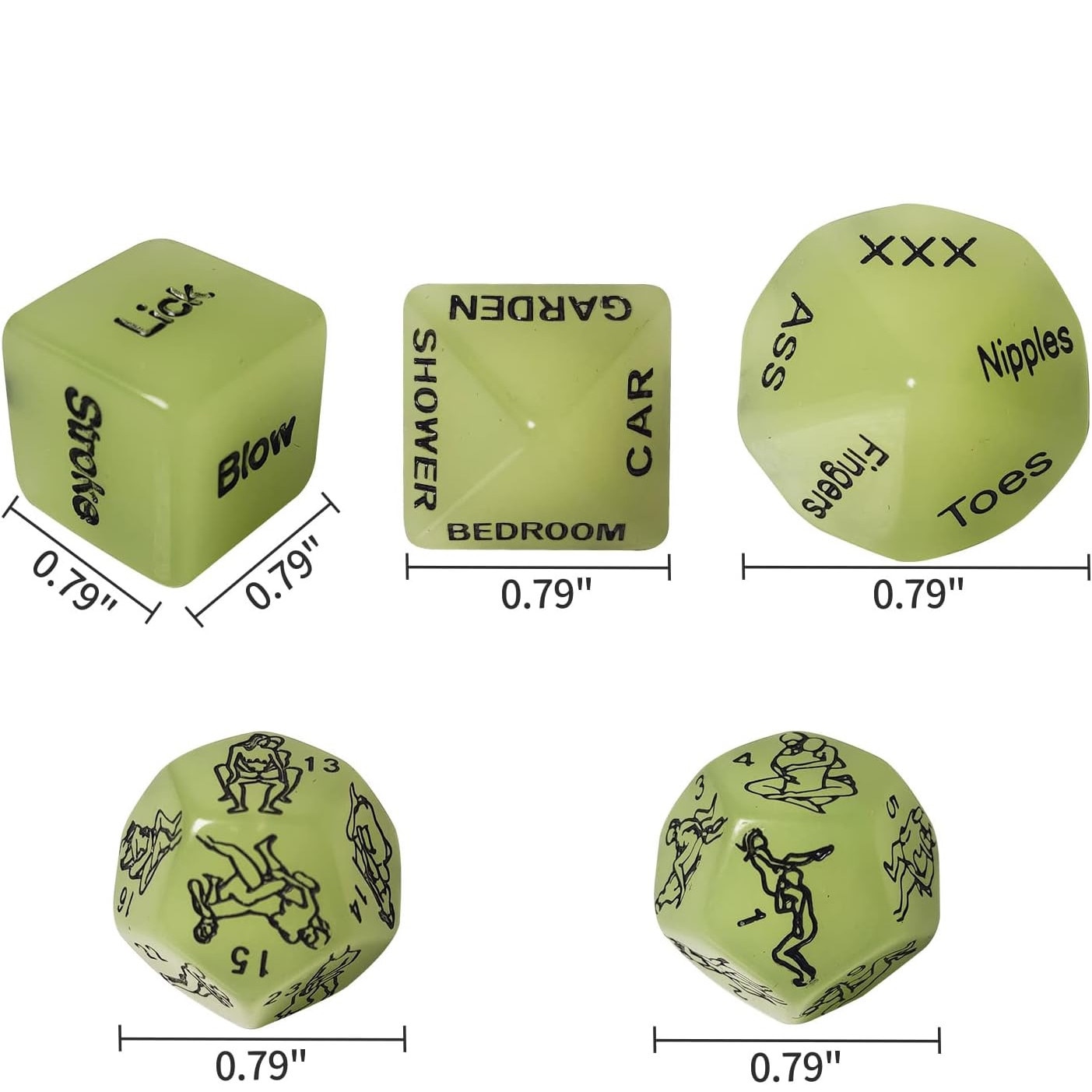 - Straluceste in intuneric si cadou perfect - 5 dintre cuburi stralucesc in intuneric pentru un preludiu fara lumina, doua cuburi pentru incalzire si unul pentru pozitii. Cadou minunat pentru cupluri sau proaspat casatoriti, cadou pentru petreceri de burlaci, aniversari, Craciun, Ziua Indragostitilor sau orice sarbatoare.